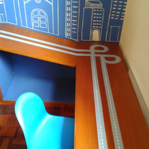 Los elementos que componen el cuarto de Felipe se integran para generar un ambiente cálido, cómodo y acogedor que se adapta a las necesidades del niño.